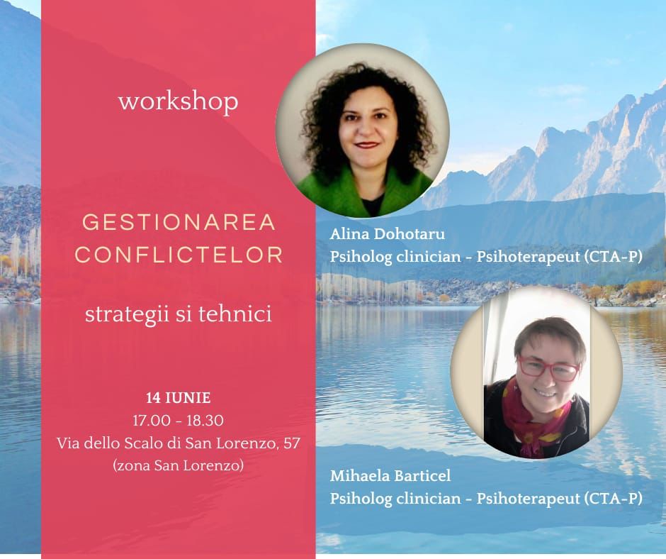 Te invit la un seminar despre geeionarea conflictelor ce va avea loc sambata 14 iunie 2025, începând cu ora 17.00 la Asociatia Byzarticon, Via scalo di san Lorenzo 57.